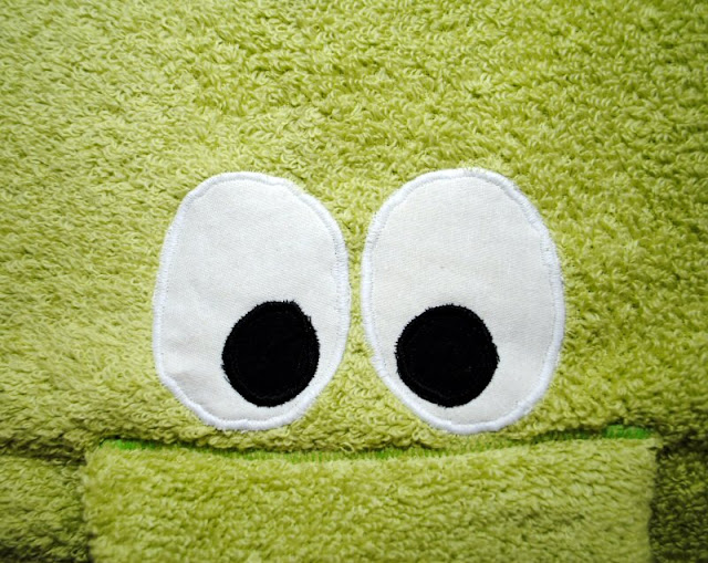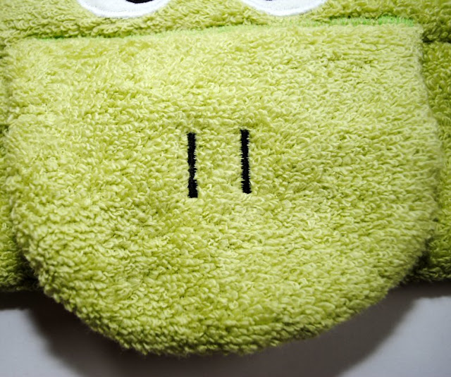Isn’t this froggy cute?!?! OK, maybe it’s partly the adorable model too. I’ve also done a ladybug and a monkey and will introduce a new towel each month.